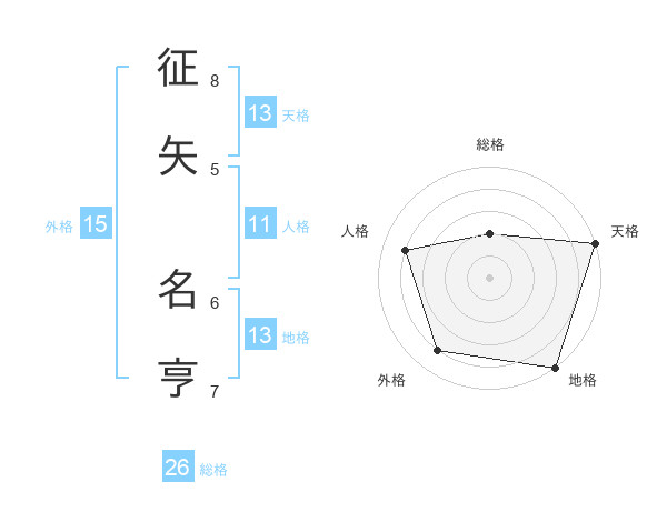 征矢 名亨さんを姓名の画数から五運を鑑定