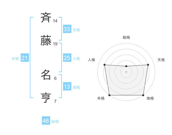 斉藤 名亨さんの外格は21画の5点!