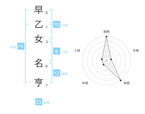 早乙女 名亨さんを姓名の画数から五運を鑑定