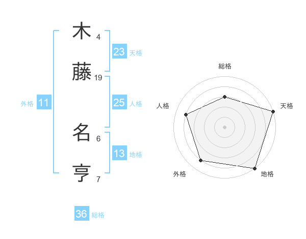 木藤 名亨さんを姓名の画数から五運を鑑定