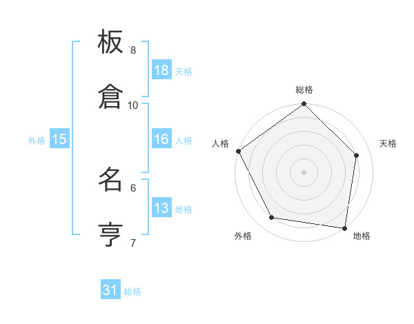 板倉 名亨さんを姓名の画数から五運を鑑定