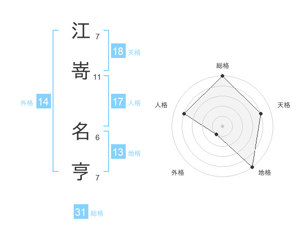 江嵜 名亨さんの総格は31画の5点!