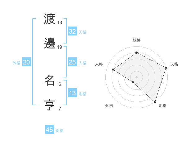 渡邊 名亨さんの総格は45画の4点!