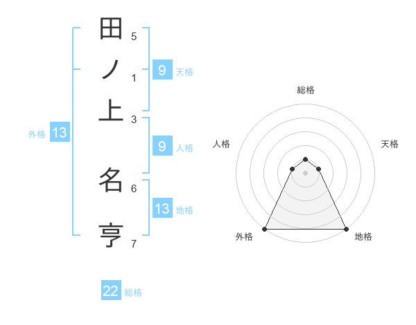 田ノ上 名亨さんを姓名の画数から五運を鑑定