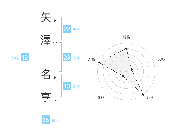 矢澤 名亨さんを姓名の画数から五運を鑑定