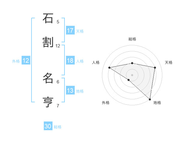 石割 名亨さんの地格は13画の5点!