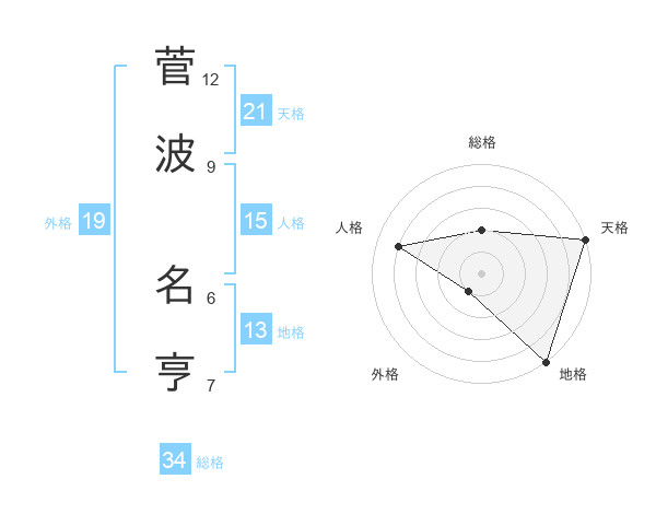 菅波 名亨さんの天格は21画の5点!