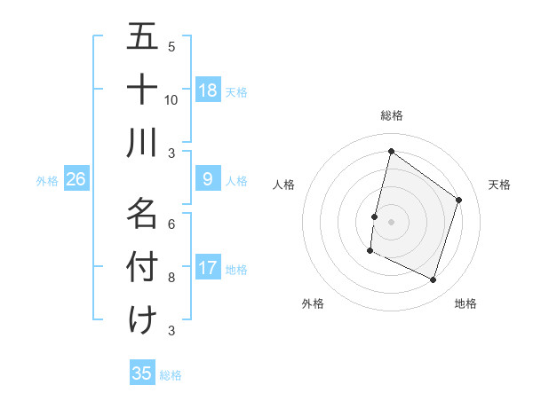 五十川 名付けさんを姓名の画数から五運を鑑定