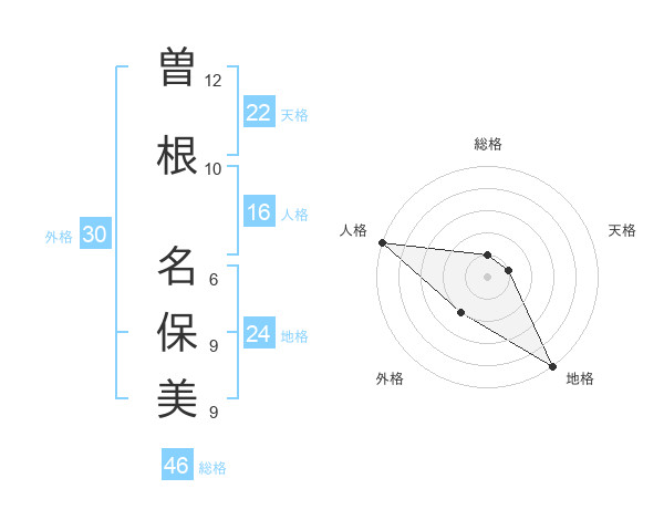 曽根 名保美さんを姓名の画数から五運を鑑定
