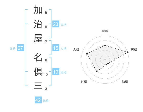 加治屋 名倶三さんを姓名の画数から五運を鑑定