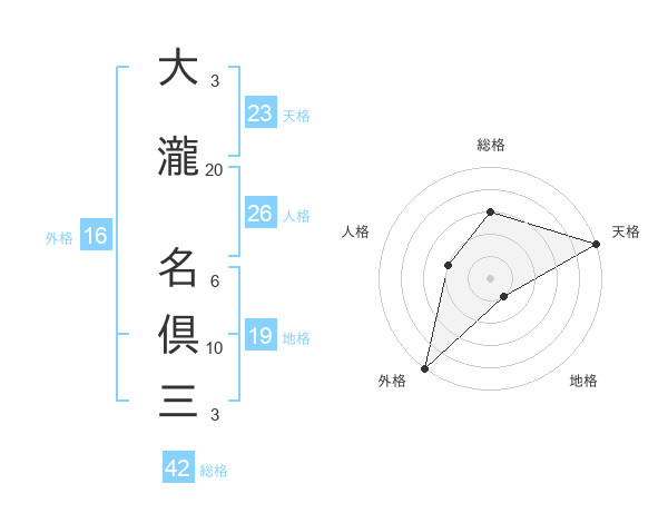 大瀧 名倶三さんの総格は42画の3点!