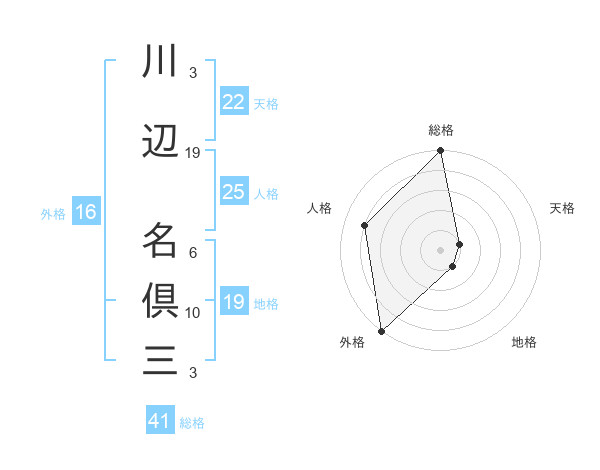 川辺 名倶三さんを姓名の画数から五運を鑑定