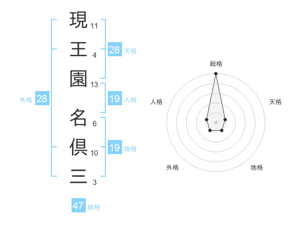 現王園 名倶三さんを姓名の画数から五運を鑑定