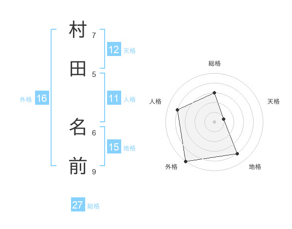 村田 名前さんの総格は27画の3点!
