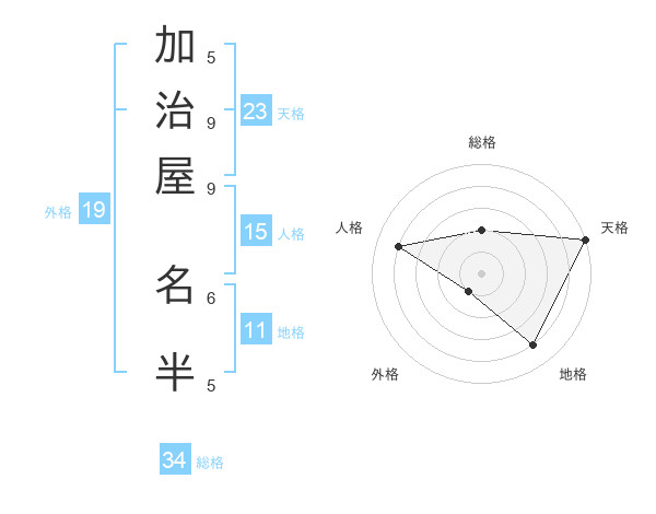 加治屋 名半さんを姓名の画数から五運を鑑定