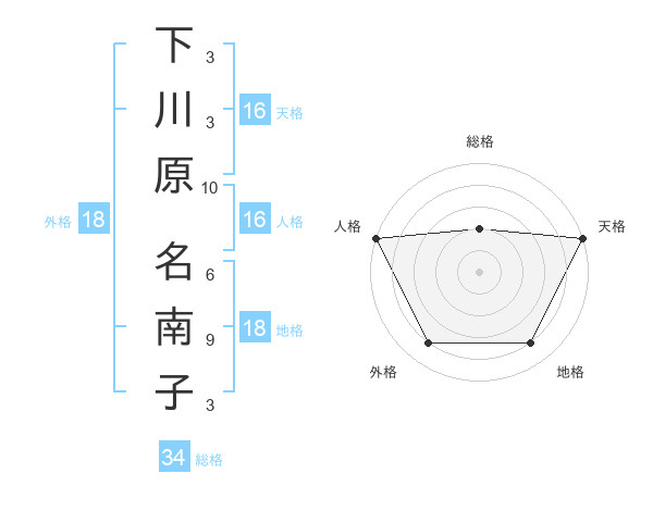 下川原 名南子さんの天格は16画の5点