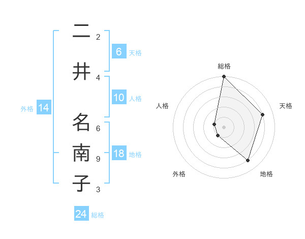 二井 名南子さんの総格は24画の5点!