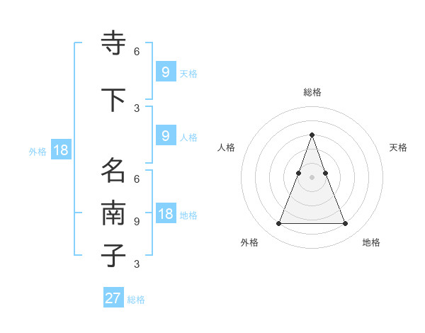 寺下 名南子さんを姓名の画数から五運を鑑定