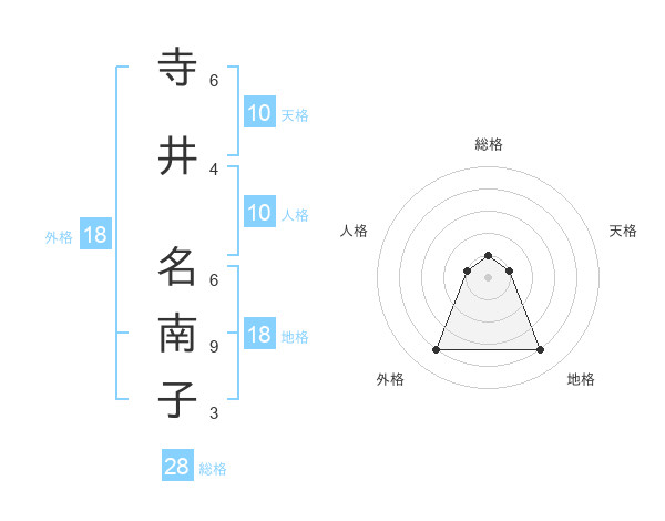 寺井 名南子さんの外格は18画の4点!