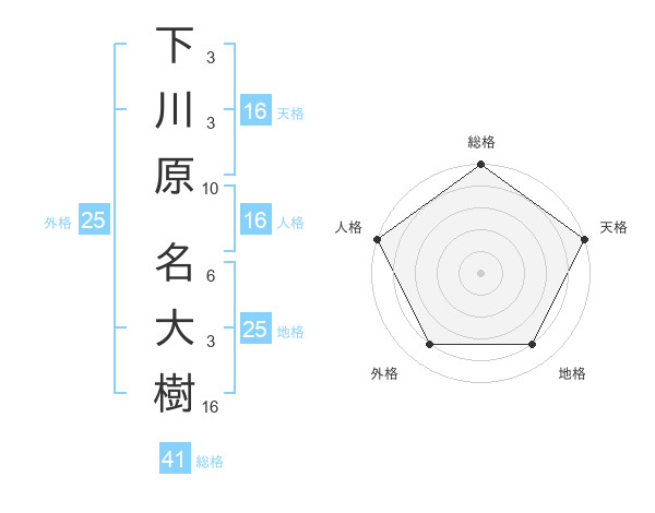 下川原 名大樹さんの総格は41画の5点!