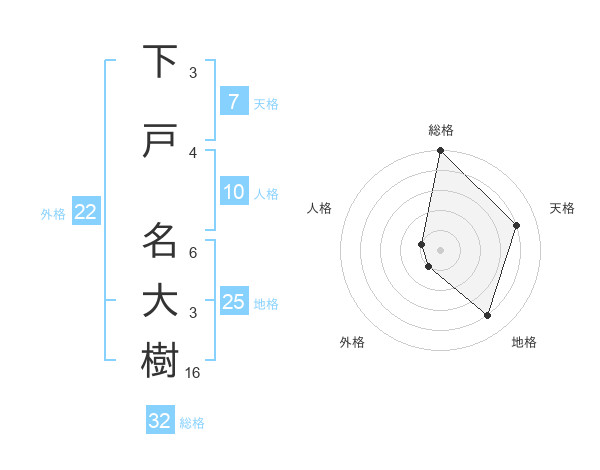 下戸 名大樹さんの総格は32画の5点!