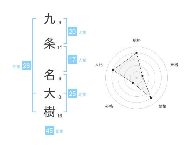 九条 名大樹さんを姓名の画数から五運を鑑定