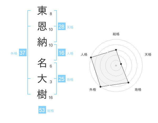 東恩納 名大樹さんの外格は37画の5点!