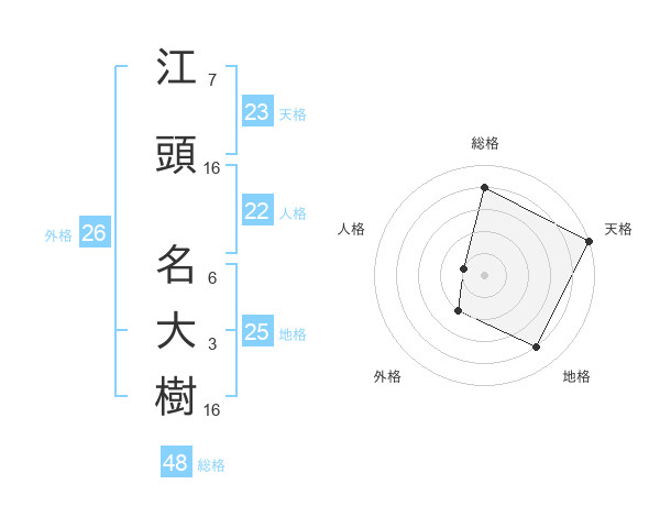 江頭 名大樹さんを姓名の画数から五運を鑑定