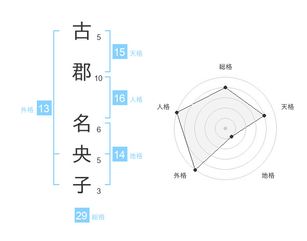 古郡 名央子さんを姓名の画数から五運を鑑定