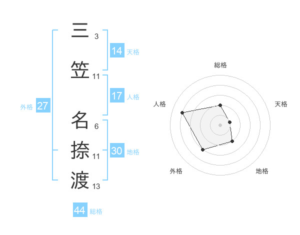 三笠 名捺渡さんを姓名の画数から五運を鑑定