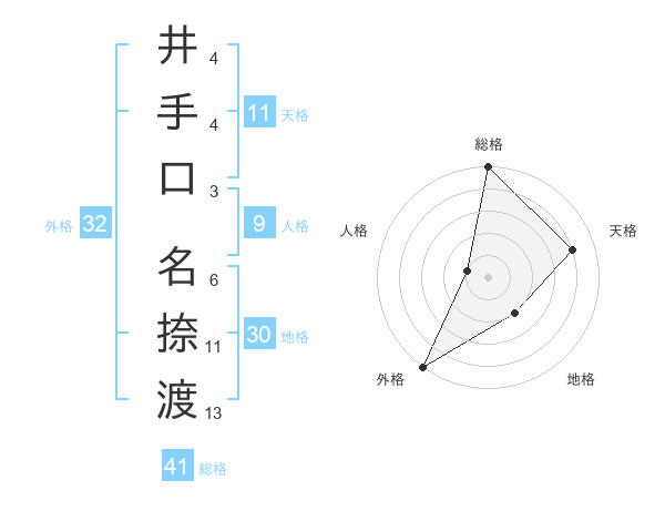 井手口 名捺渡さんの外格は32画の5点!