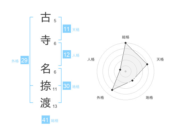 古寺 名捺渡さんを姓名の画数から五運を鑑定