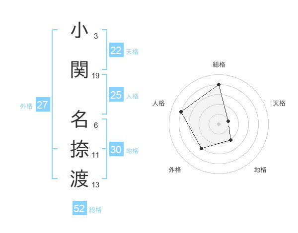 小関 名捺渡さんの総格は52画の4点!