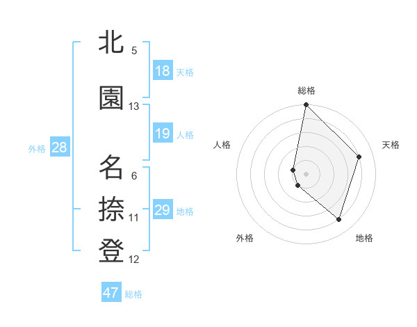 北園 名捺登さんの総格は47画の5点!