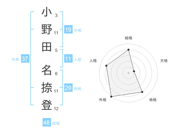 小野田 名捺登さんを姓名の画数から五運を鑑定