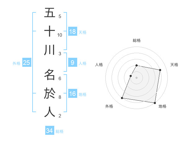 五十川 名於人さんを姓名の画数から五運を鑑定