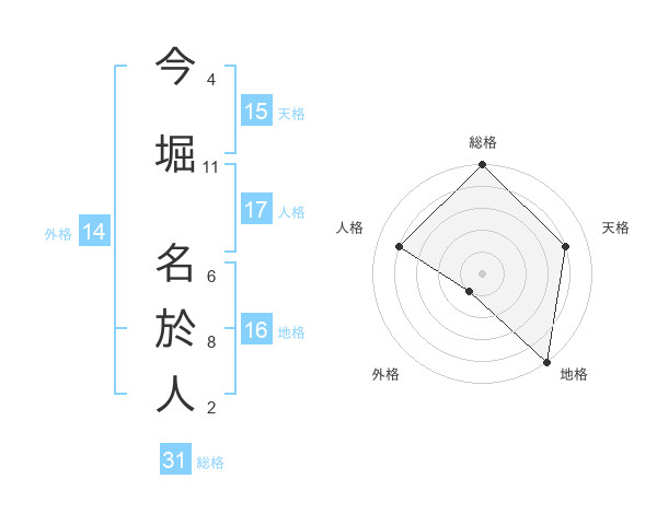 今堀 名於人さんを姓名の画数から五運を鑑定