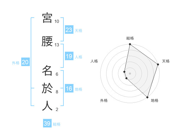 宮腰 名於人さんを姓名の画数から五運を鑑定