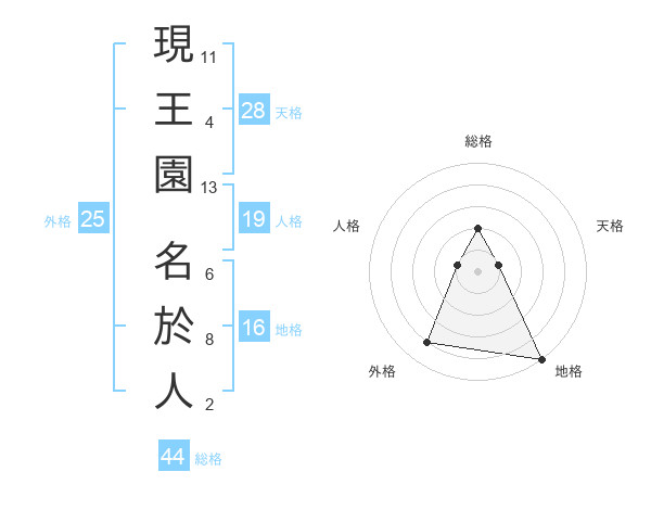 現王園 名於人さんを姓名の画数から五運を鑑定