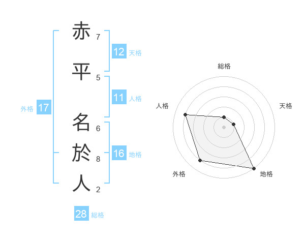 赤平 名於人さんの外格は17画の4点!