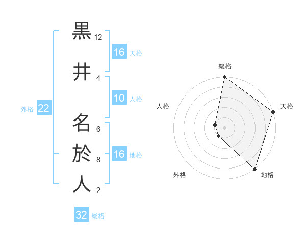 黒井 名於人さんを姓名の画数から五運を鑑定