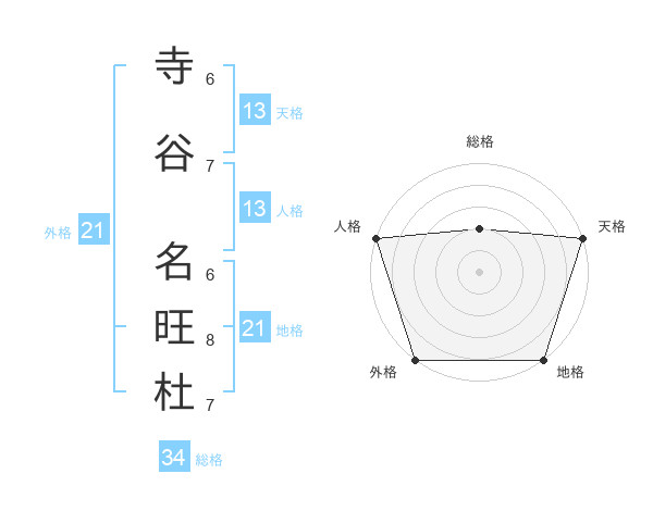 寺谷 名旺杜さんの天格は13画の5点!