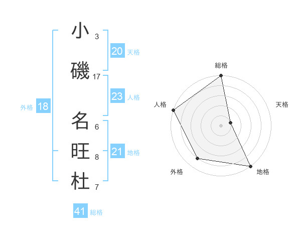 小磯 名旺杜さんの外格は18画の4点!