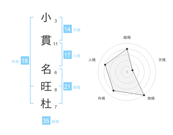 小貫 名旺杜さんの総格は35画の4点!