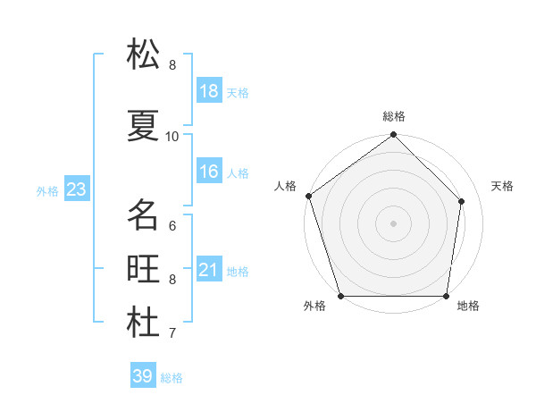 松夏 名旺杜さんの外格は23画の5点!