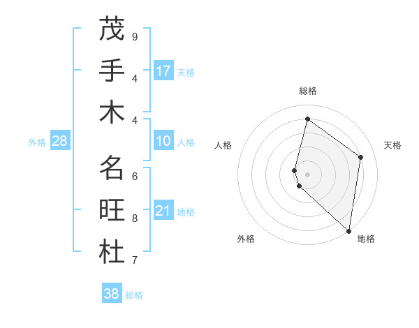 茂手木 名旺杜さんを姓名の画数から五運を鑑定