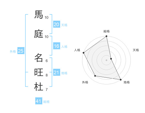 馬庭 名旺杜さんを姓名の画数から五運を鑑定