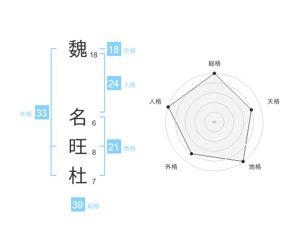 魏 名旺杜さんの総格は39画の5点!