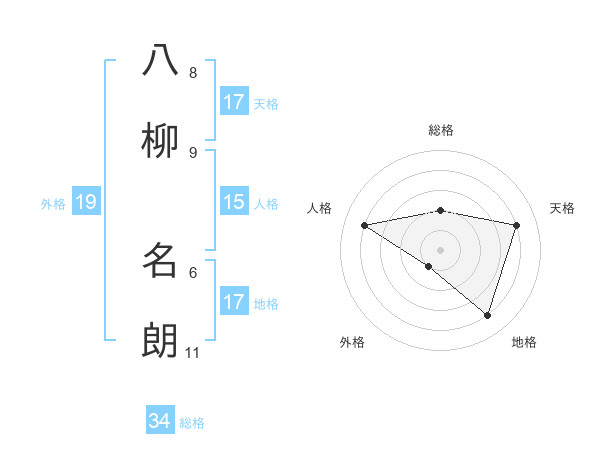 八柳 名朗さんの天格は17画の4点!