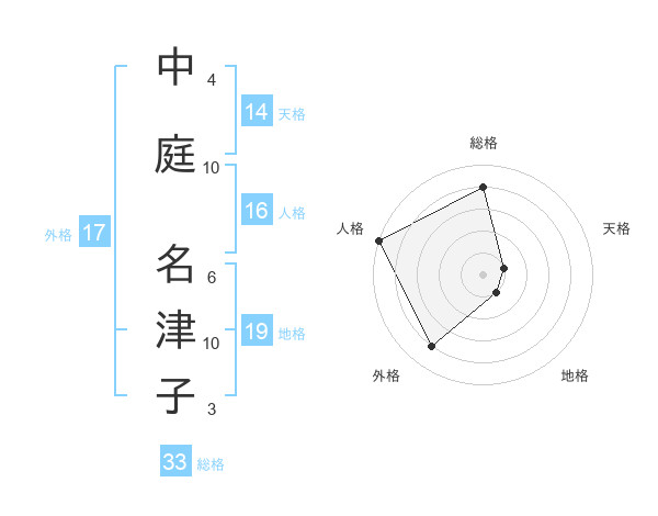中庭 名津子さんを姓名の画数から五運を鑑定
